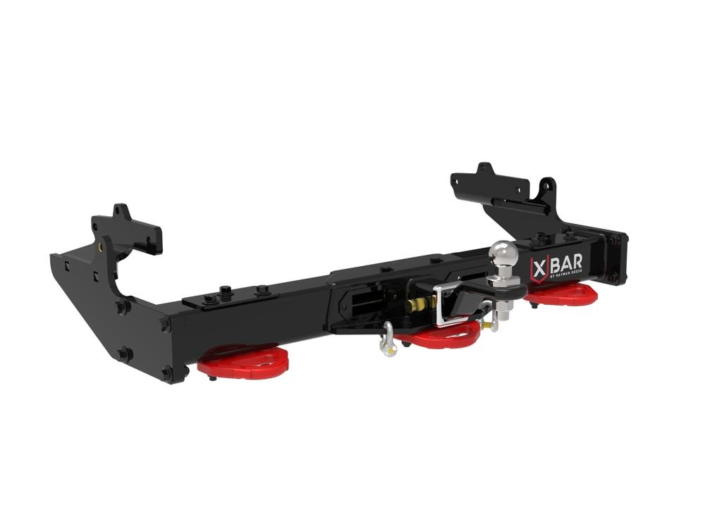 With a tow capacity of 3500kg and a ball weight of 300kg the X-Bar is designed specifically for vehicle recovery with 3 rated rear recovery points (sides 4,000kg each, centre 8,000kg). The X-Bar has improved departure angles and includes an integrated bash plate and twin protected trailer plugs for travelling off-road