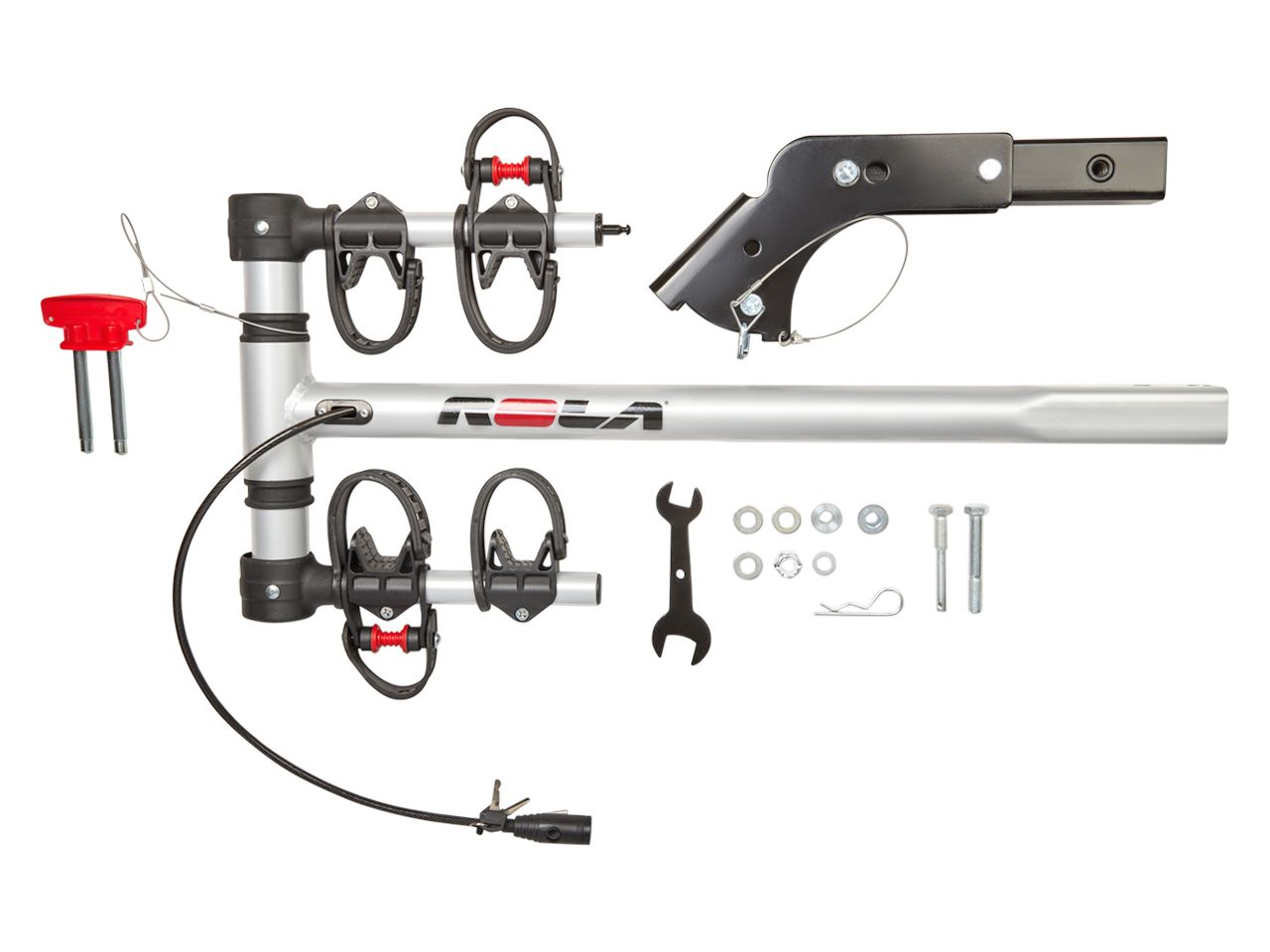 Transport two bicycles with ease from your towbar. Includes cradles that fit most bikes, anti-sway rollers and an integrated cable lock to secure bikes.
