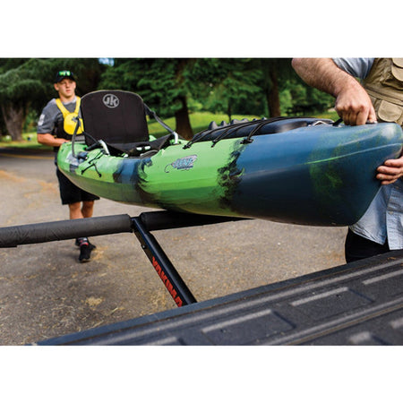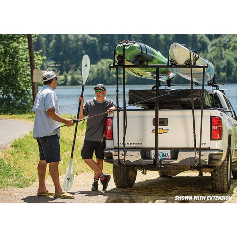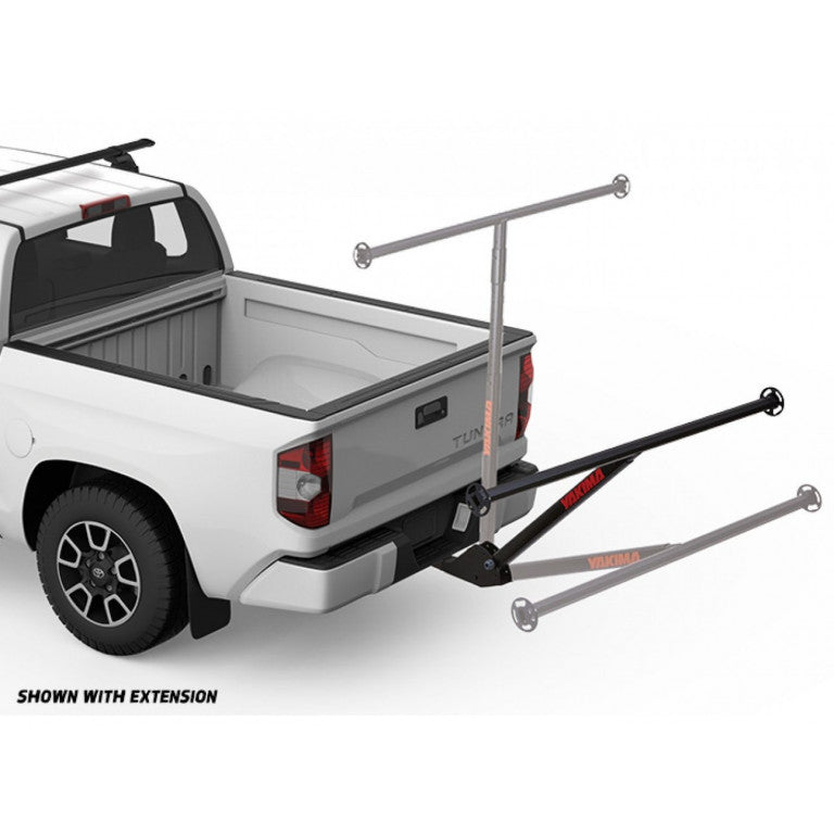 The LongArm truck bed extender easily extends the length of any truck bed up to 122 cm. Light and strong, the aluminium hitch mounted rack is the ideal solution for hauling fishing kayaks, boards, lumber, ladders and more. Adjustable to three distinct load-carrying positions and rated to carry up to 136 kg in lower positions, the LongArm takes your truck bed to the next level.Please check your local state or regional laws on projecting loads before purchasing or using this product. Use of lights, flags, or restrictions to certain features may apply.