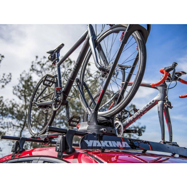 Friends will double-take when they see our most versatile, aerodynamic bike mount on your car. It carries your complete bike — no wheel removal needed. The universal mounting system fits nearly any crossbars you can think of.Now includes SKS locks.