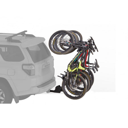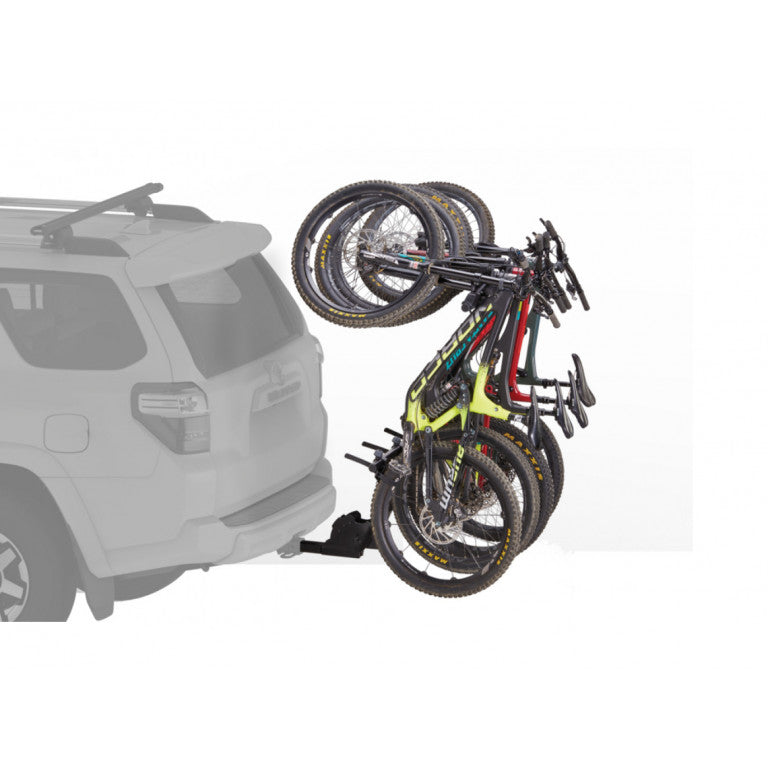 Perfect for tour operators, group rides and big families. Constructed of heavy-duty steel, our first-ever vertical bike rack carries more bikes in less space, so you can safely haul your whole tribe’s mountain bikes to the trailhead. We designed and tested it in the lab and on the road to meet our demanding Yakima standards. The easy-to-operate tilt mechanism with three adjustable mast angles keep your bikes from bumping into your car, ute or SUV and makes accessing the tailgate a breeze.Download ourhitch rack fit tipsto check if this rack will work with your vehicle.