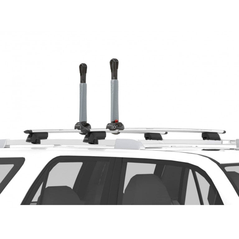 Now the entire posse only needs to mount up on one vehicle. The BigStack lets you carry up to 4 boats on your roof, or use that room for other gear for a multi-sport adventure. Folds down for better aerodynamics when not in use. HullGuard™ padding keeps your boats safe and universal mounts fit nearly any shape crossbar.