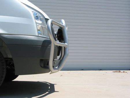 This ECB Roo Bar has been designed specifically for the Ford Transit VM and will provide frontal protection and enhance the aesthetics of the vehicle. Designed and manufactured in Australia to suit our harsh conditions, this Roo Bar is designed to provide optimum protection for the bumper, grille and head lights and is formed from high tensile alloy tubing that will never rust or corrode. Each Roo Bar comes standard with spotlight mounting tabs. Our Roo Bars come with a lifetime warranty. Your ECB Roo Bar is available in a polished alloy finish or choose from one of our low maintenance powdercoat finishes.