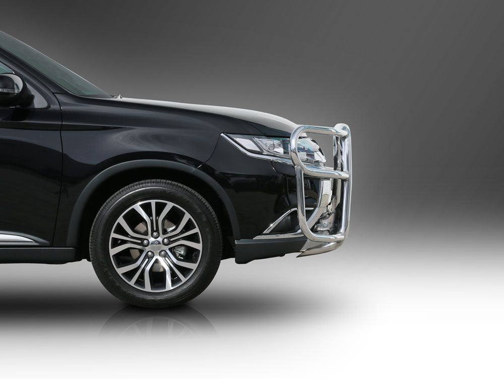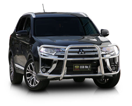 This ECB Roo Bar has been designed specifically for the Mitsubishi Outlander ZK and will provide frontal protection and enhance the aesthetics of the vehicle. Designed and manufactured in Australia to suit our harsh conditions, this Roo Bar is designed to provide optimum protection for the bumper, grille and head lights and is formed from high tensile alloy tubing that will never rust or corrode. Each Roo Bar comes standard with spotlight mounting tabs. Our Roo Bars come with a lifetime warranty. Your ECB Roo Bar is available in a polished alloy finish or choose from one of our low maintenance powdercoat finishes.