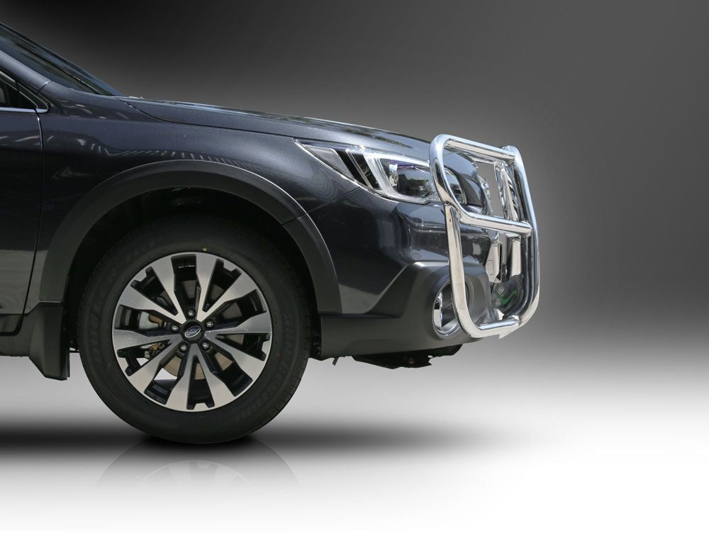 This ECB Roo Bar has been designed specifically for the Subaru Outback and will provide frontal protection and enhance the aesthetics of the vehicle. Designed and manufactured in Australia to suit our harsh conditions, this Roo Bar is designed to provide optimum protection for the bumper, grille and head lights and is formed from high tensile alloy tubing that will never rust or corrode. Each Roo Bar comes standard with spotlight mounting tabs. Our Roo Bars come with a lifetime warranty. Your ECB Roo Bar is available in a polished alloy finish or choose from one of our low maintenance powdercoat finishes.