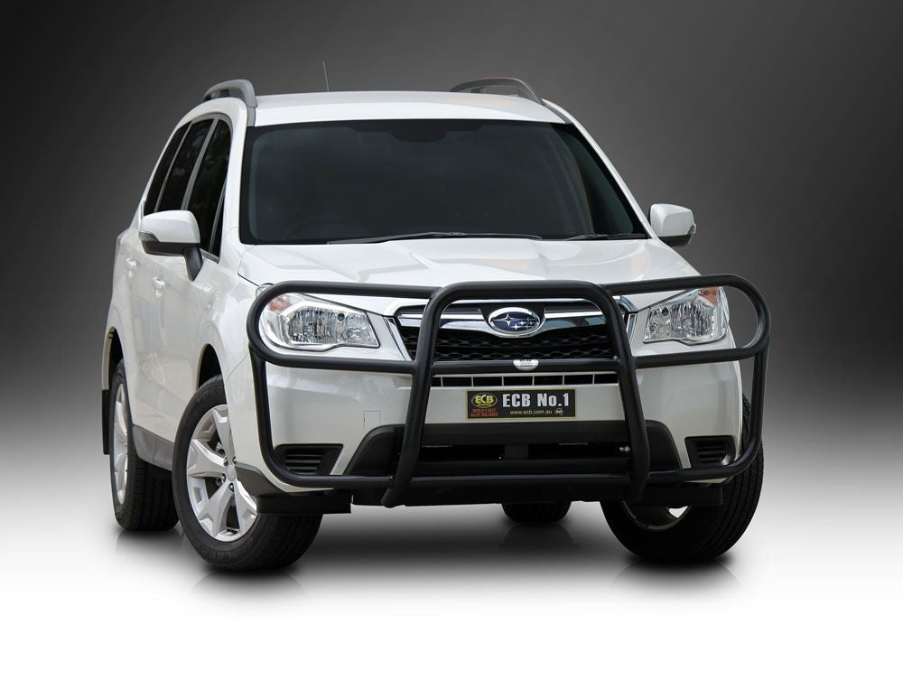 This ECB Roo Bar has been designed specifically for the Subaru Forester MY13 and will provide frontal protection and enhance the aesthetics of the vehicle. Designed and manufactured in Australia to suit our harsh conditions, this Roo Bar is designed to provide optimum protection for the bumper, grille and head lights and is formed from high tensile alloy tubing that will never rust or corrode. Each Roo Bar comes standard with spotlight mounting tabs. Our Roo Bars come with a lifetime warranty. Your ECB Roo Bar is available in a polished alloy finish or choose from one of our low maintenance powdercoat finishes.