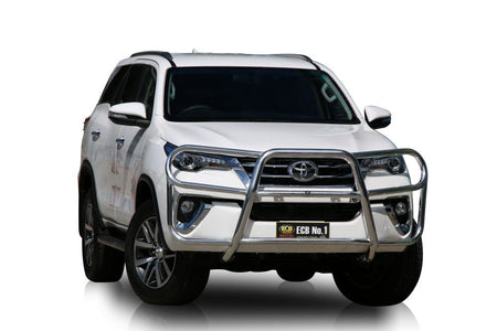 This ECB Roo Bar has been designed specifically for the Toyota Fortuner and will provide frontal protection and enhance the aesthetics of the vehicle. Designed and manufactured in Australia to suit our harsh conditions, this Roo Bar is designed to provide optimum protection for the bumper, grille and head lights and is formed from high tensile alloy tubing that will never rust or corrode. Each Roo Bar comes standard with spotlight mounting tabs. Our Roo Bars come with a lifetime warranty. Your ECB Roo Bar is available in a polished alloy finish or choose from one of our low maintenance powdercoat finishes.