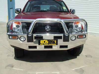 For the ultimate in frontal protection you will find it hard to go past the strength, quality and style of the ECB Bullbar for your Holden Rodeo RA7 Lt. The single piece channel is fully welded and manufactured from high tensile, structural grade alloys to provide maximum strength. Our Bullbar incorporates a full width, braced lower protection skirt and the specifically designed steel mounting system ensures a neat and sturdy fit. ECB LED light combinations, bumper lights, air directional cooling vents and an aerial bracket are all standard features. Your ECB Bullbar is available in a polished alloy finish or choose from one of our low maintenance powdercoat finishes. Our ECB Bullbar is proudly manufactured in Australia and we offer a lifetime warranty.