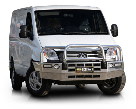 For the ultimate in frontal protection you will find it hard to go past the strength, quality and style of the ECB Bullbar for your LDV V80. The single piece channel is fully welded and manufactured from high tensile, structural grade alloys to provide maximum strength. Our Bullbar incorporates a full width, braced lower protection skirt and the specifically designed steel mounting system ensures a neat and sturdy fit. ECB LED light combinations, air directional cooling vents and an aerial bracket are all standard features. Your ECB Bullbar is available in a polished alloy finish or choose from one of our low maintenance powdercoat finishes. Our ECB Bullbar is proudly manufactured in Australia and we offer a lifetime warranty.