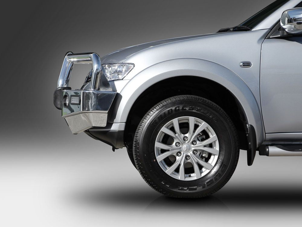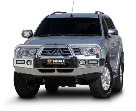 For the ultimate in frontal protection you will find it hard to go past the strength, quality and style of the ECB Bullbar for your Mitsubishi Challenger PC. The single piece channel is fully welded and manufactured from high tensile, structural grade alloys to provide maximum strength. Our Bullbar incorporates a full width, braced lower protection skirt and the specifically designed steel mounting system ensures a neat and sturdy fit. ECB LED light combinations, bumper lights, air directional cooling vents and an aerial bracket are all standard features. Your ECB Bullbar is available in a polished alloy finish or choose from one of our low maintenance powdercoat finishes. Our ECB Bullbar is proudly manufactured in Australia and we offer a lifetime warranty.