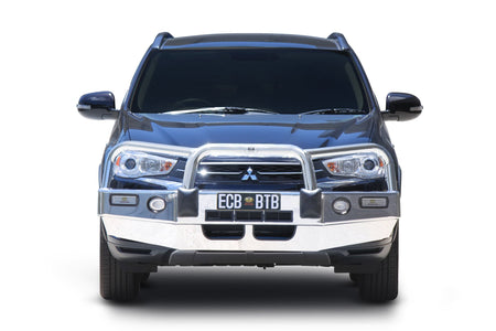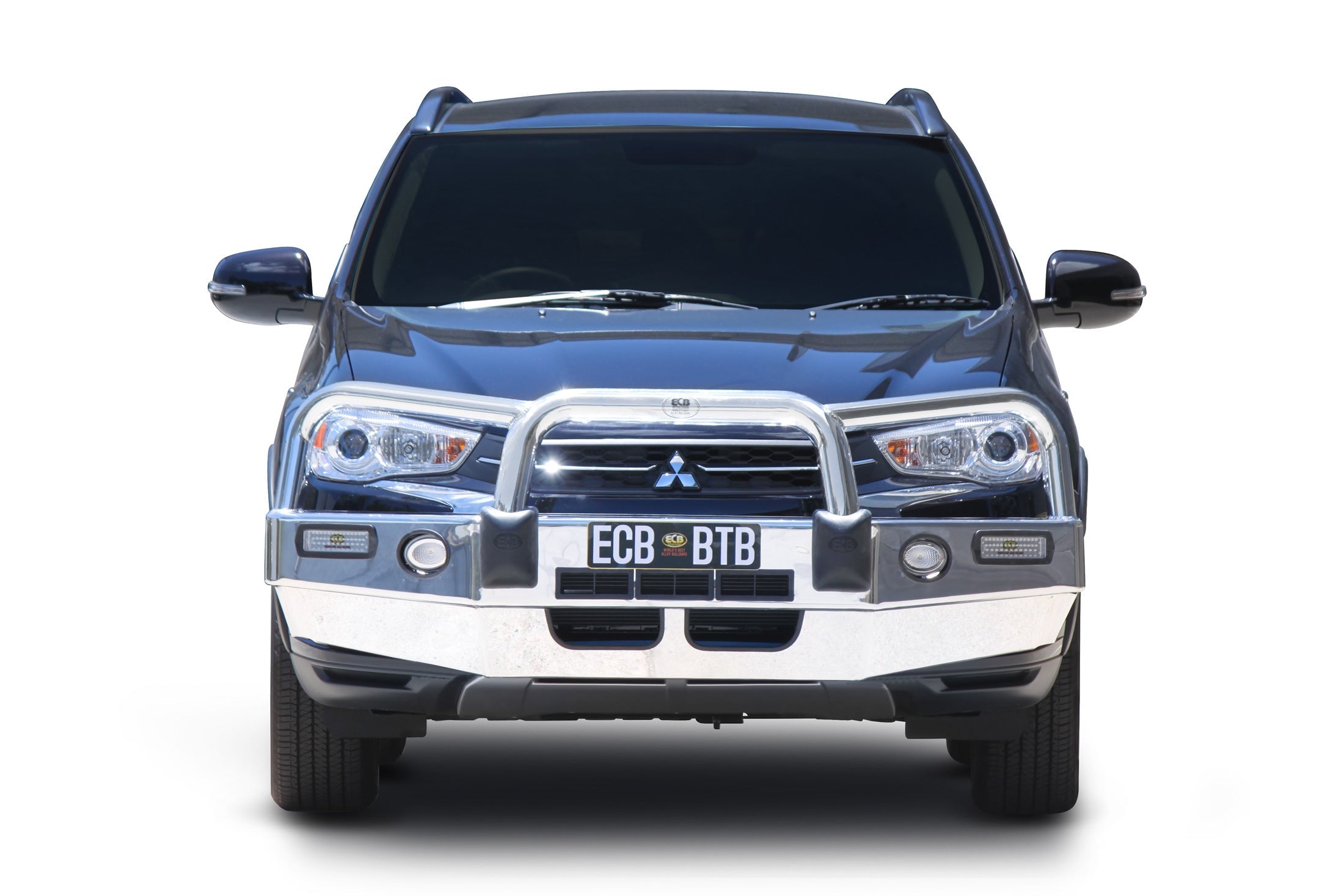 For the ultimate in frontal protection you will find it hard to go past the strength, quality and style of the ECB Bullbar for your Mitsubishi ASX. The single piece channel is fully welded and manufactured from high tensile, structural grade alloys to provide maximum strength. Our Bullbar incorporates a full width, braced lower protection skirt and the specifically designed steel mounting system ensures a neat and sturdy fit. ECB LED light combinations, bumper lights, air directional cooling vents and an aerial bracket are all standard features. Your ECB Bullbar is available in a polished alloy finish or choose from one of our low maintenance powdercoat finishes. Our ECB Bullbar is proudly manufactured in Australia and we offer a lifetime warranty.