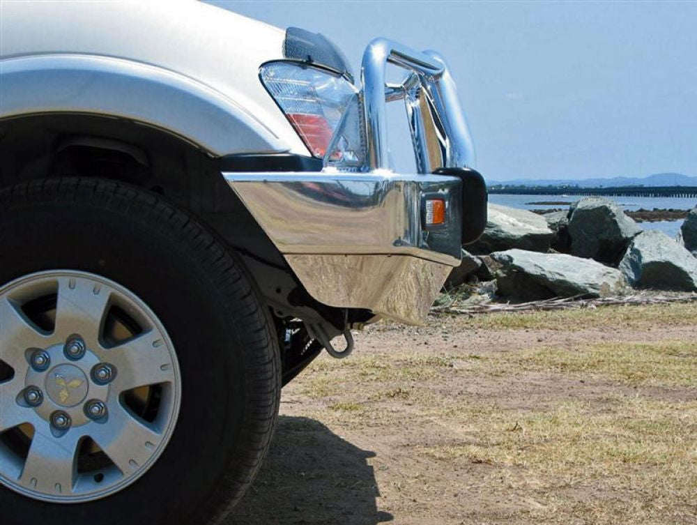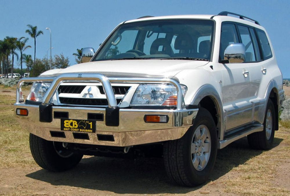 For the ultimate in frontal protection you will find it hard to go past the strength, quality and style of the ECB Alloy Bullbar for your Mitsubishi Pajero NM. The single piece channel is fully welded and manufactured from high tensile, structural grade alloys to provide maximum strength. Our Bullbar incorporates a full width, braced lower protection skirt and the specifically designed steel mounting system ensures a neat and sturdy fit. ECB LED light combinations, air directional cooling vents and an aerial bracket are all standard features. Your ECB Bullbar is available in a polished alloy finish or choose from one of our low maintenance powdercoat finishes. Our ECB Bullbar is proudly manufactured in Australia and we offer a lifetime warranty.