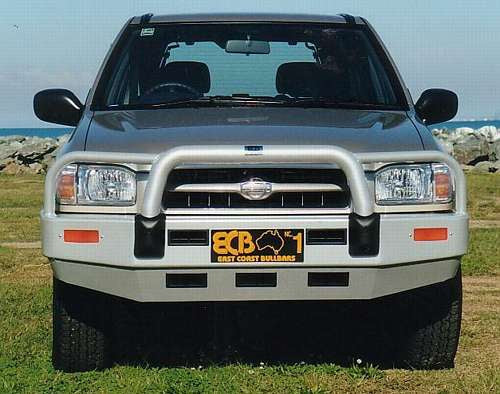 For the ultimate in frontal protection you will find it hard to go past the strength, quality and style of the ECB Bullbar for your Nissan Pathfinder R50 Series 2. The single piece channel is fully welded and manufactured from high tensile, structural grade alloys to provide maximum strength. Our Bullbar incorporates a full width, braced lower protection skirt and the specifically designed steel mounting system ensures a neat and sturdy fit. ECB LED light combinations, air directional cooling vents and an aerial bracket are all standard features. Your ECB Bullbar is available in a polished alloy finish or choose from one of our low maintenance powdercoat finishes. Our ECB Bullbar is proudly manufactured in Australia and we offer a lifetime warranty.