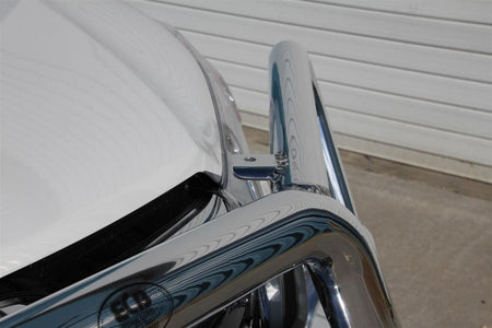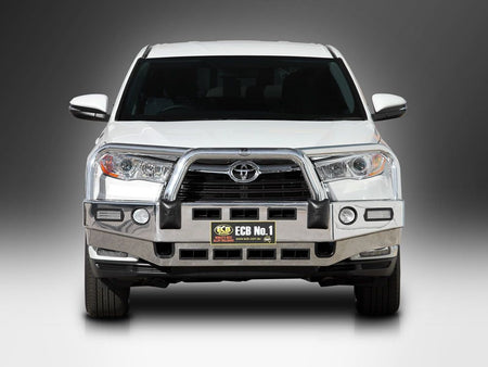 For the ultimate in frontal protection you will find it hard to go past the strength, quality and style of the ECB Alloy Bullbar with Bumper Lights for your Toyota Kluger. The single piece channel is fully welded and manufactured from high tensile, structural grade alloys to provide maximum strength. Our Bullbar with Bumper Lights incorporates a full width, braced lower protection skirt and the specifically designed steel mounting system ensures a neat and sturdy fit. ECB LED light combinations, bumper lights, air directional cooling vents and an aerial bracket are all standard features. Your ECB Bullbar with Bumper Lights is available in a mirror finished polished alloy or choose from one of our low maintenance powder coat finishes. Our ECB Bullbar with Bumper Lights is proudly manufactured in Australia and we offer a lifetime warranty.