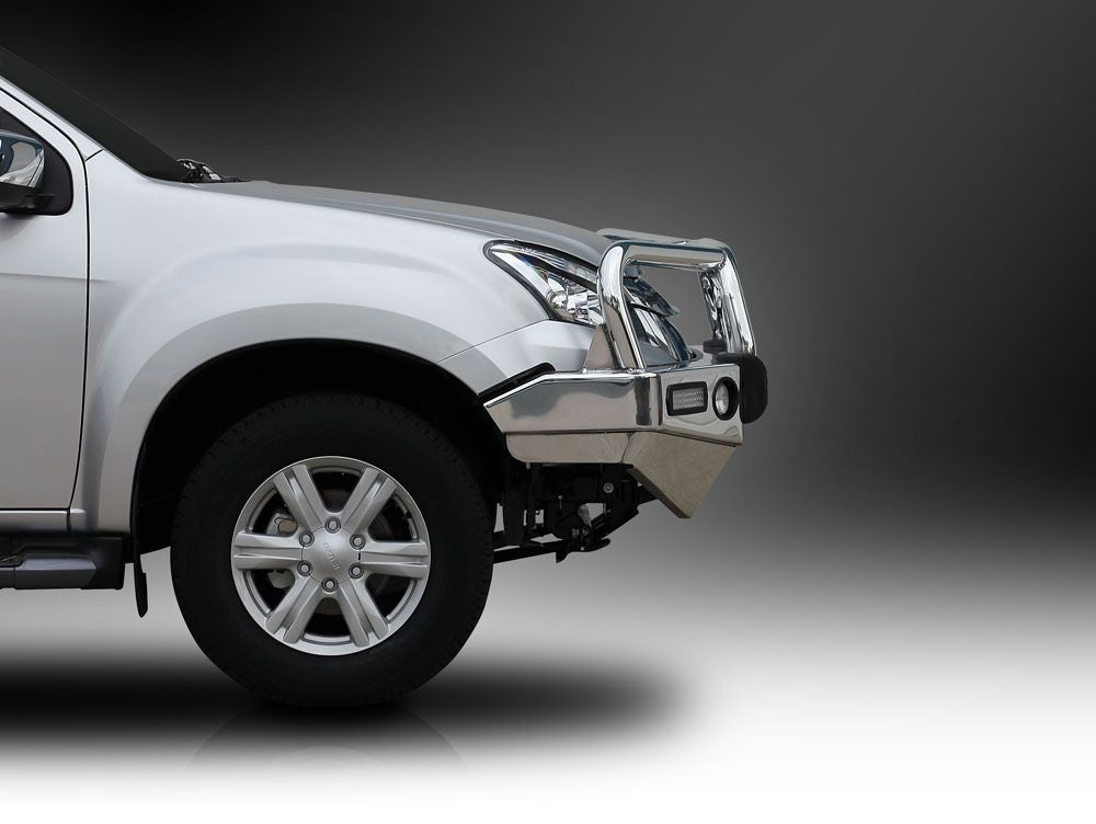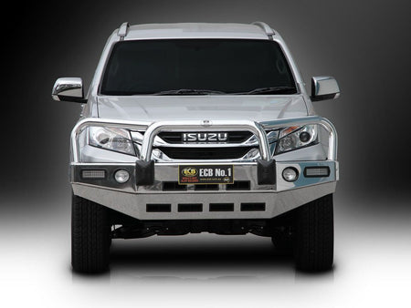 For the ultimate in frontal protection you will find it hard to go past the strength, quality and style of the ECB Bullbar for your Isuzu Mu-X. The single piece channel is fully welded and manufactured from high tensile, structural grade alloys to provide maximum strength. Our Bullbar incorporates a full width, braced lower protection skirt and the specifically designed steel mounting system ensures a neat and sturdy fit. ECB LED light combinations, bumper lights, air directional cooling vents and an aerial bracket are all standard features. Your ECB Bullbar is available in a polished alloy finish or choose from one of our low maintenance powdercoat finishes. Our ECB Bullbar is proudly manufactured in Australia and we offer a lifetime warranty.