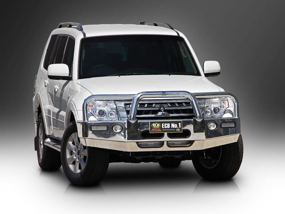 For the ultimate in frontal protection you will find it hard to go past the strength, quality and style of the ECB Alloy Bullbar with Bumper Lights for your Mitsubishi Pajero NX Gls. The single piece channel is fully welded and manufactured from high tensile, structural grade alloys to provide maximum strength. Our Bullbar with Bumper Lights incorporates a full width, braced lower protection skirt and the specifically designed steel mounting system ensures a neat and sturdy fit. ECB LED light combinations, bumper lights, air directional cooling vents and an aerial bracket are all standard features. Your ECB Bullbar with Bumper Lights is available in a polished alloy finish or choose from one of our low maintenance powdercoat finishes. Our ECB Bullbar with Bumper Lightsis proudly manufactured in Australia and we offer a lifetime warranty.