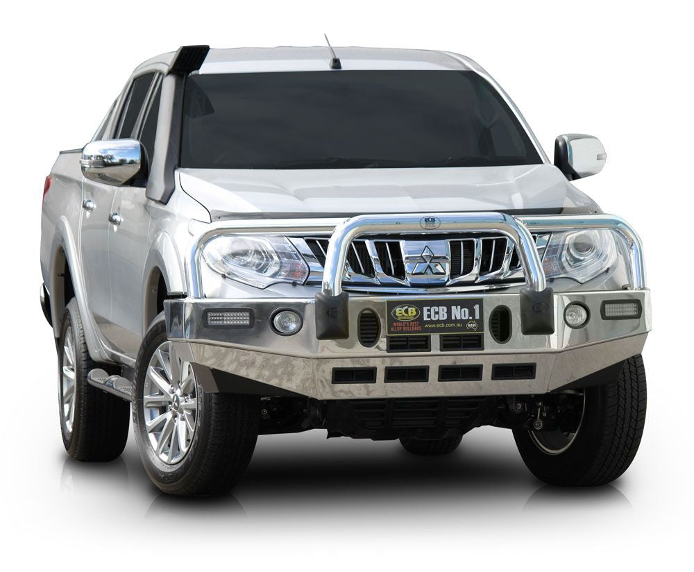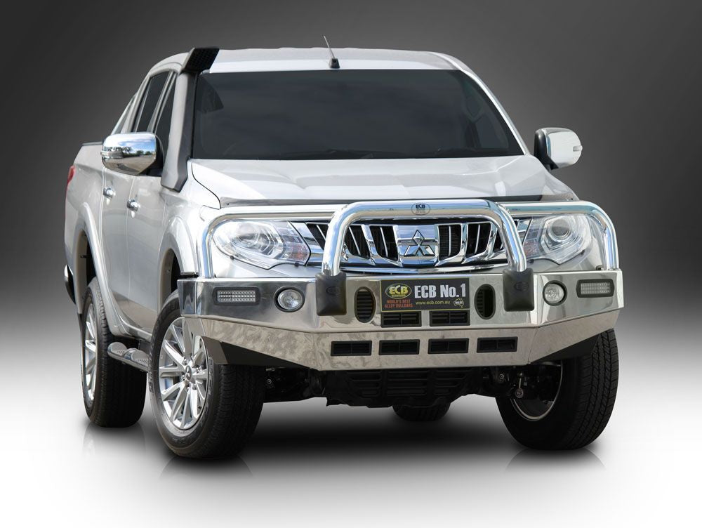 For the ultimate in frontal protection you will find it hard to go past the strength, quality and style of the ECB Bullbar for your Mitsubishi Triton MQ. The single piece channel is fully welded and manufactured from high tensile, structural grade alloys to provide maximum strength. Our Bullbar incorporates a full width, braced lower protection skirt and the specifically designed steel mounting system ensures a neat and sturdy fit. ECB LED light combinations, bumper lights, air directional cooling vents and an aerial bracket are all standard features. Your ECB Bullbar is available in a polished alloy or choose from one of our low maintenance powdercoat finishes. Our ECB Bullbar is proudly manufactured in Australia and we offer a lifetime warranty.