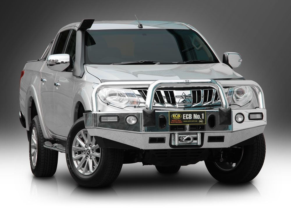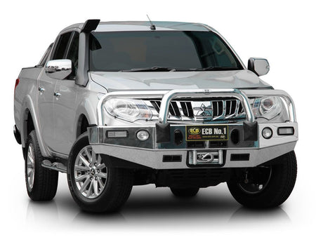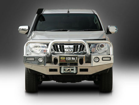 For the ultimate in frontal protection you will find it hard to go past the strength, quality and style of the ECB Winch Compatible Bullbar for your Mitsubishi Triton MQ. The single piece channel is fully welded and manufactured from high tensile, structural grade alloys to provide maximum strength. This no compromise design is engineered to accommodate up to a 10,500lb low mount winch that is attached to the chassis as part of the specifically designed steel mounting system ensuring a neat and sturdy fit. Our Winch Compatible Bullbar incorporates a full width, braced lower protection skirt. ECB LED light combinations, bumper lights, air directional cooling vents and an aerial bracket are all standard features. Your ECB Winch Compatible Bullbar is available in a polished alloy finish or choose from one of our low maintenance powdercoat finishes. Our ECB Winch Compatible Bullbar is proudly manufactured in Australia and we offer a lifetime warranty.