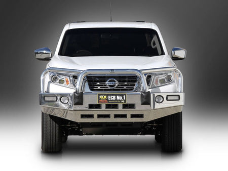 For the ultimate in frontal protection you will find it hard to go past the strength, quality and style of the ECB Bullbar for your Nissan Navara NP300. The single piece channel is fully welded and manufactured from high tensile, structural grade alloys to provide maximum strength. Our Bullbar incorporates a full width, braced lower protection skirt and the specifically designed steel mounting system ensures a neat and sturdy fit. ECB LED light combinations, bumper lights, air directional cooling vents and an aerial bracket are all standard features. Your ECB Bullbar is available in a polished alloy finish or choose from one of our low maintenance powdercoat finishes. Our ECB Bullbar is proudly manufactured in Australia and we offer a lifetime warranty.