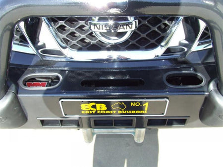 For the ultimate in frontal protection you will find it hard to go past the strength, quality and style of the ECB Winch Compatible Bullbar for your Nissan Navara D40. The single piece channel is fully welded and manufactured from high tensile, structural grade alloys to provide maximum strength. This no compromise design is engineered to accommodate up to a 9,000lb low mount winch that is attached to the chassis as part of the specifically designed steel mounting system ensuring a neat and sturdy fit. Our Winch Compatible Bullbar incorporates a full width, braced lower protection skirt. ECB LED light combinations, bumper lights, air directional cooling vents and an aerial bracket are all standard features. Your ECB Winch Compatible Bullbar is available in a polished alloy finish or choose from one of our low maintenance powdercoat finishes. Our ECB Winch Compatible Bullbar is proudly manufactured in Australia and we offer a lifetime warranty.