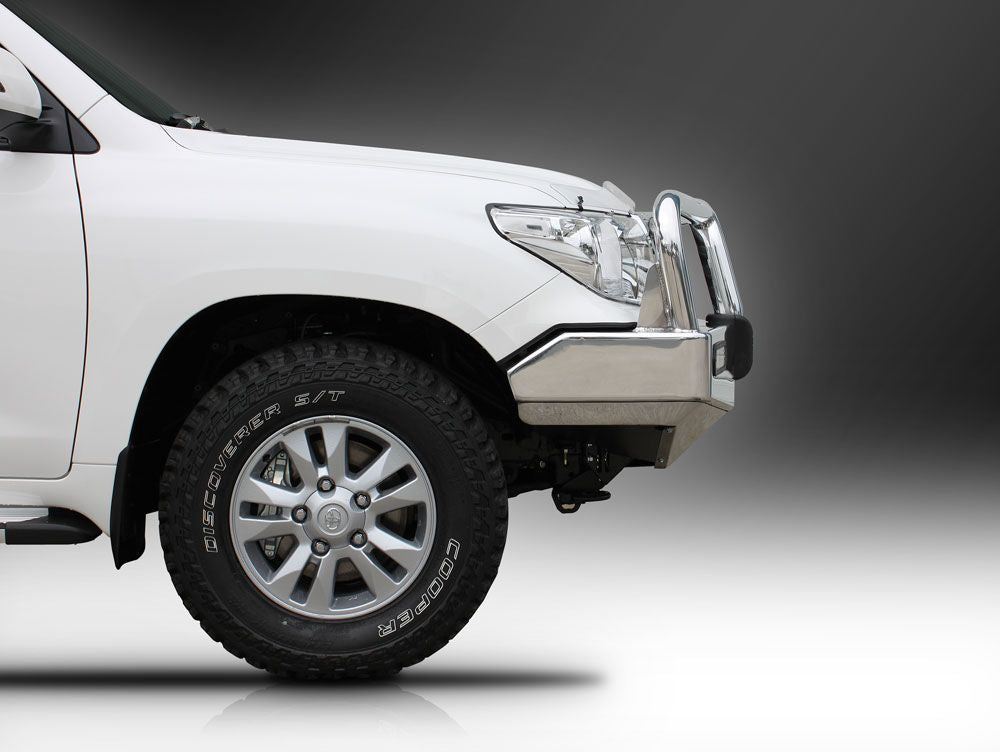 For the ultimate in frontal protection you will find it hard to go past the strength, quality and style of the ECB Bullbar for your Toyota LandCruiser 200 Series. The single piece channel is fully welded and manufactured from high tensile, structural grade alloys to provide maximum strength. Our Bullbar incorporates a full width, braced lower protection skirt and the specifically designed steel mounting system ensures a neat and sturdy fit. ECB LED light combinations, air directional cooling vents and an aerial bracket are all standard features. Your ECB Bullbar is available in a polished alloy finish or choose from one of our low maintenance powdercoat finishes. Our ECB Bullbar is proudly manufactured in Australia and we offer a lifetime warranty.