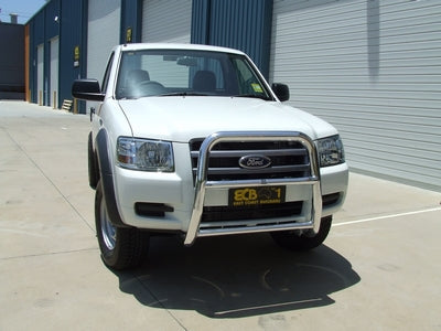 This ECB Alloy Series 2 Nudge Bar has been designed specifically for the Ford Ranger and will provide frontal protection and enhance the aesthetics of the vehicle. Designed and manufactured in Australia to suit our harsh conditions, this Series 2 Nudge Bar is designed with a lower centre tube to provide bumper and grille protection and is formed from high tensile alloy tubing that will never rust or corrode. Each Series 2 Nudge Bar comes standard with spotlight mounting tabs. Our Series 2 Nudge Bar are built stronger and substantially lighter than poorer quality, thinner sectioned imported stainless steel alternatives and come with a lifetime warranty. Your ECB Series 2 Nudge Bar is available in a polished alloy finish or choose from one of our low maintenance powdercoat finishes.