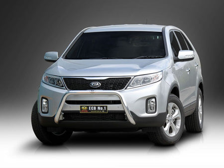 This ECB Nudge Bar has been designed specifically for the Kia Sorento and will provide frontal protection and enhance the aesthetics of the vehicle. Designed and manufactured in Australia to suit our harsh conditions, this Nudge Bar is formed from high tensile alloy tubing that will never rust or corrode. Each Nudge Bar comes standard with spotlight mounting tabs. Our Nudge Bars are built stronger and substantially lighter than poorer quality, thinner sectioned imported stainless steel alternatives and come with a lifetime warranty. Your ECB Nudge Bar is available in a polished alloy finish or choose from one of our low maintenance powdercoat finishes.