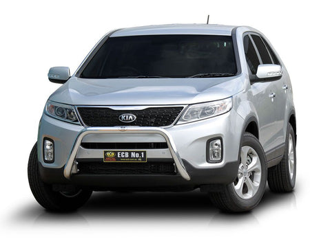This ECB Nudge Bar has been designed specifically for the Kia Sorento and will provide frontal protection and enhance the aesthetics of the vehicle. Designed and manufactured in Australia to suit our harsh conditions, this Nudge Bar is formed from high tensile alloy tubing that will never rust or corrode. Each Nudge Bar comes standard with spotlight mounting tabs. Our Nudge Bars are built stronger and substantially lighter than poorer quality, thinner sectioned imported stainless steel alternatives and come with a lifetime warranty. Your ECB Nudge Bar is available in a polished alloy finish or choose from one of our low maintenance powdercoat finishes.