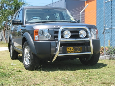 This ECB Series 2 Nudge Bar has been designed specifically for the Landrover Discovery 3 and will provide frontal protection and enhance the aesthetics of the vehicle. Designed and manufactured in Australia to suit our harsh conditions, this Series 2 Nudge Bar is designed with a lower centre tube to provide bumper and grille protection and is formed from high tensile alloy tubing that will never rust or corrode. Each Series 2 Nudge Bar comes standard with spotlight mounting tabs. Our Series 2 Nudge Bars are built stronger and substantially lighter than poorer quality, thinner sectioned imported stainless steel alternatives and come with a lifetime warranty. Your ECB Series 2 Nudge Bar is available in a polished alloy finish or choose from one of our low maintenance powdercoat finishes.