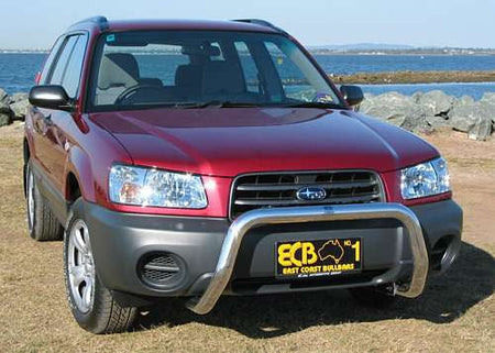 This ECB Nudge Bar has been designed specifically for the Subaru Forester and will provide frontal protection and enhance the aesthetics of the vehicle. Designed and manufactured in Australia to suit our harsh conditions, this Nudge Bar is formed from high tensile alloy tubing that will never rust or corrode. Each Nudge Bar comes standard with spotlight mounting tabs. Our Nudge Bars are built stronger and substantially lighter than poorer quality, thinner sectioned imported stainless steel alternatives and come with a lifetime warranty. Your ECB Nudge Bar is available in a polished alloy finish or choose from one of our low maintenance powdercoat finishes.