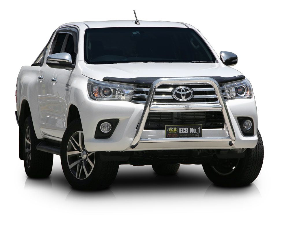 This ECB Series 2 Nudge Bar has been designed specifically for the Toyota HiLux and will provide frontal protection and enhance the aesthetics of the vehicle. Designed and manufactured in Australia to suit our harsh conditions, this Series 2 Nudge Bar is designed with a lower centre tube to provide bumper and grille protection and is formed from high tensile alloy tubing that will never rust or corrode. Each Series 2 Nudge Bar comes standard with spotlight mounting tabs. Our Series 2 Nudge Bars are built stronger and substantially lighter than poorer quality, thinner sectioned imported stainless steel alternatives and come with a lifetime warranty. Your ECB Series 2 Nudge Bar is available in a polished alloy finish or choose from one of our low maintenance powdercoat finishes.