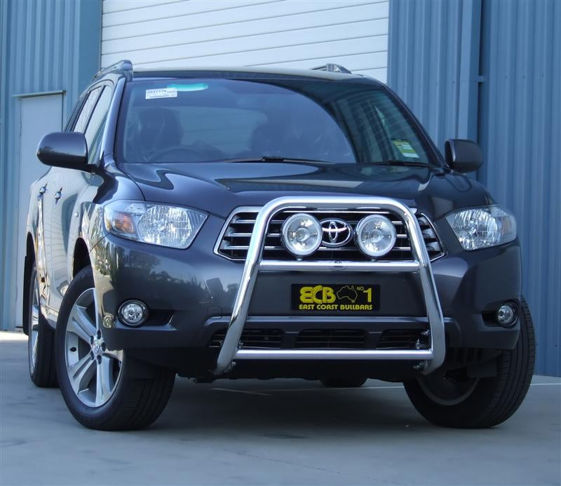This ECB Series 2 Nudge Bar has been designed specifically for the Toyota Kluger and will provide frontal protection and enhance the aesthetics of the vehicle. Designed and manufactured in Australia to suit our harsh conditions, this Series 2 Nudge Bar is designed with a lower centre tube to provide bumper and grille protection and is formed from high tensile alloy tubing that will never rust or corrode. Each Series 2 Nudge Bar comes standard with spotlight mounting tabs. Our Series 2 Nudge Bars are built stronger and substantially lighter than poorer quality, thinner sectioned imported stainless steel alternatives and come with a lifetime warranty. Your ECB Series 2 Nudge Bar is available in a polished alloy finish or choose from one of our low maintenance powdercoat finishes.