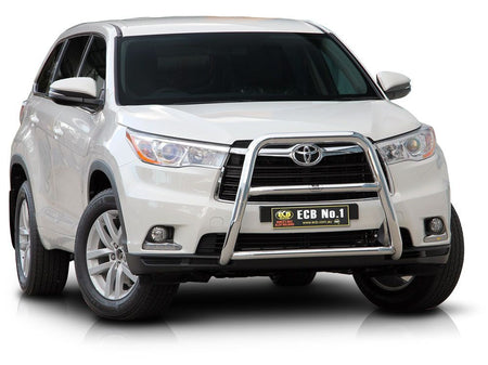 This ECB Series 2 Nudge Bar has been designed specifically for the Toyota Kluger and will provide frontal protection and enhance the aesthetics of the vehicle. Designed and manufactured in Australia to suit our harsh conditions, this Series 2 Nudge Bar is designed with a lower centre tube to provide bumper and grille protection and is formed from high tensile alloy tubing that will never rust or corrode. Each Series 2 Nudge Bar comes standard with spotlight mounting tabs. Our Series 2 Nudge Bars are built stronger and substantially lighter than poorer quality, thinner sectioned imported stainless steel alternatives and come with a lifetime warranty. Your ECB Series 2 Nudge Bar is available in a polished alloy finish or choose from one of our low maintenance powdercoat finishes.