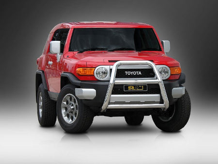 This ECB Series 2 Nudge Bar has been designed specifically for the Toyota FJ Cruiser and will provide frontal protection and enhance the aesthetics of the vehicle. Designed and manufactured in Australia to suit our harsh conditions, this Series 2 Nudge Bar is designed with a lower centre tube to provide bumper and grille protection and is formed from high tensile alloy tubing that will never rust or corrode. Each Series 2 Nudge Bar comes standard with spotlight mounting tabs. Our Series 2 Nudge Bars are built stronger and substantially lighter than poorer quality, thinner sectioned imported stainless steel alternatives and come with a lifetime warranty. Your ECB Series 2 Nudge Bar is available in a polished alloy finish or choose from one of our low maintenance powdercoat finishes.