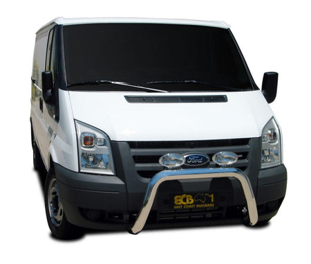 This ECB Nudge Bar has been designed specifically for the Ford Transit VM and will provide frontal protection and enhance the aesthetics of the vehicle. Designed and manufactured in Australia to suit our harsh conditions, this Nudge Bar is formed from high tensile alloy tubing that will never rust or corrode. Each Nudge Bar comes standard with spotlight mounting tabs. Our Nudge Bars are built stronger and substantially lighter than poorer quality, thinner sectioned imported stainless steel alternatives and come with a lifetime warranty. Your ECB Nudge Bar is available in a polished alloy finish or choose from one of our low maintenance powdercoat finishes.
