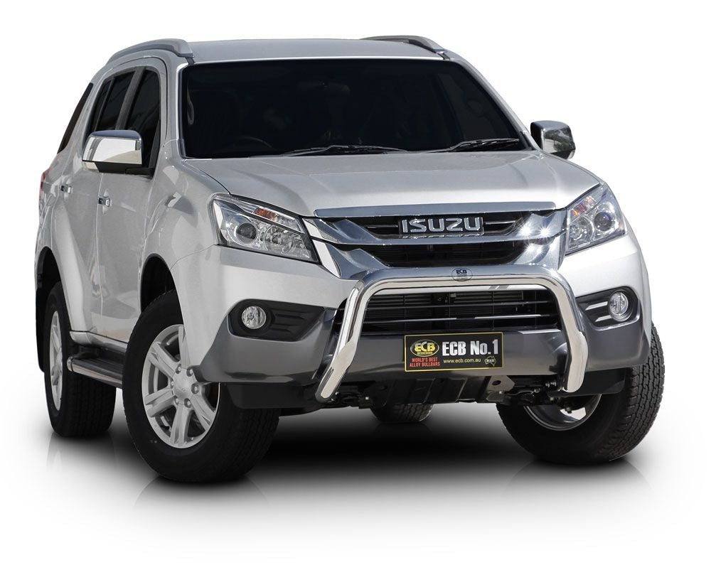 This ECB Nudge Bar has been designed specifically for the Isuzu Mu-X and will provide frontal protection and enhance the aesthetics of the vehicle. Designed and manufactured in Australia to suit our harsh conditions, this Nudge Bar is formed from high tensile alloy tubing that will never rust or corrode. Each Nudge Bar comes standard with spotlight mounting tabs. Our Nudge Bars are built stronger and substantially lighter than poorer quality, thinner sectioned imported stainless steel alternatives and come with a lifetime warranty. Your ECB Nudge Bar is available in a polished alloy finish or choose from one of our low maintenance powdercoat finishes.
