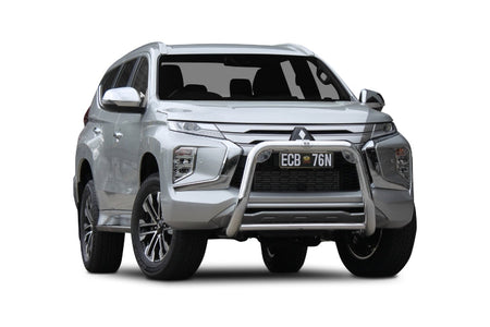 This ECB Alloy Nudge Bar has been designed specifically for the Mitsubishi Pajero Sport (Exceed, GLS and GLX) and will provide frontal protection and enhance the aesthetics of the vehicle. Designed and manufactured in Australia to suit our harsh conditions, this Nudge Bar is formed from high tensile alloy tubing that will never rust or corrode. Each Nudge Bar comes standard with spotlight mounting tabs. Our Nudge Bars are built stronger than poorer quality, thinner sectioned imported stainless steel alternatives and come with a lifetime warranty. Your ECB Nudge Bar is available in a polished finish or choose from one of our low maintenance powdercoat finishes. The Nudge Bar incorporates front parking sensors, Forward Collision Mitigation (FCM), Multi Around Monitor (MAM), Lane Change Assist (LCA), and Adaptive Cruise Control (ACC). Auxiliary Light fitment may block or interfere with Forward Collision Mitigation System. • To suit Exceed, GLS (7 and 5 seat), and GLX models