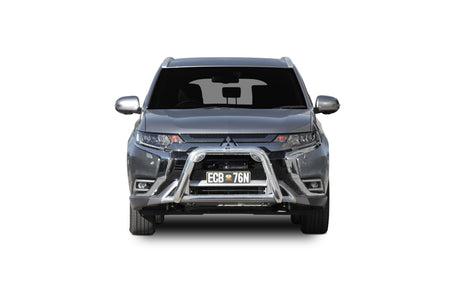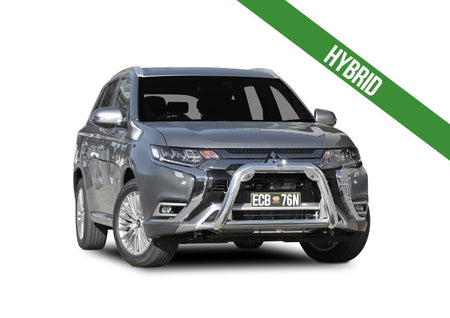 This ECB Nudge Bar has been designed specifically for the Mitsubishi Outlander PHEV Plug-In Hybrid and will provide frontal protection and enhance the aesthetics of the vehicle. Designed and manufactured in Australia to suit our harsh conditions, this Nudge Bar is formed from high tensile alloy tubing that will never rust or corrode. Each Nudge Bar comes standard with spotlight mounting tabs. Our Nudge Bars are built stronger and substantially lighter than poorer quality, thinner sectioned imported stainless steel alternatives and come with a lifetime warranty. Your ECB Nudge Bar is available in a polished finish or choose from one of our low maintenance powdercoat finishes. The Nudge Bar accommodates front parking sensors, UMS (Ultrasonic Misacceleration Mitigation System) and Forward Collision Mitigation.