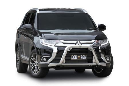 This ECB Nudge Bar has been designed specifically for the Mitsubishi Outlander ZL and will provide frontal protection and enhance the aesthetics of the vehicle. Designed and manufactured in Australia to suit our harsh conditions, this Nudge Bar is formed from high tensile alloy tubing that will never rust or corrode. Each Nudge Bar comes standard with spotlight mounting tabs. Our Nudge Bars are built stronger and substantially lighter than poorer quality, thinner sectioned imported stainless steel alternatives and come with a lifetime warranty. Your ECB Nudge Bar is available in a polished alloy finish or choose from one of our low maintenance powdercoat finishes.