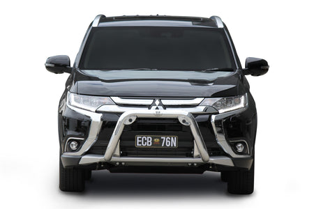 This ECB Nudge Bar has been designed specifically for the Mitsubishi Outlander ZL and will provide frontal protection and enhance the aesthetics of the vehicle. Designed and manufactured in Australia to suit our harsh conditions, this Nudge Bar is formed from high tensile alloy tubing that will never rust or corrode. Each Nudge Bar comes standard with spotlight mounting tabs. Our Nudge Bars are built stronger and substantially lighter than poorer quality, thinner sectioned imported stainless steel alternatives and come with a lifetime warranty. Your ECB Nudge Bar is available in a polished alloy finish or choose from one of our low maintenance powdercoat finishes.