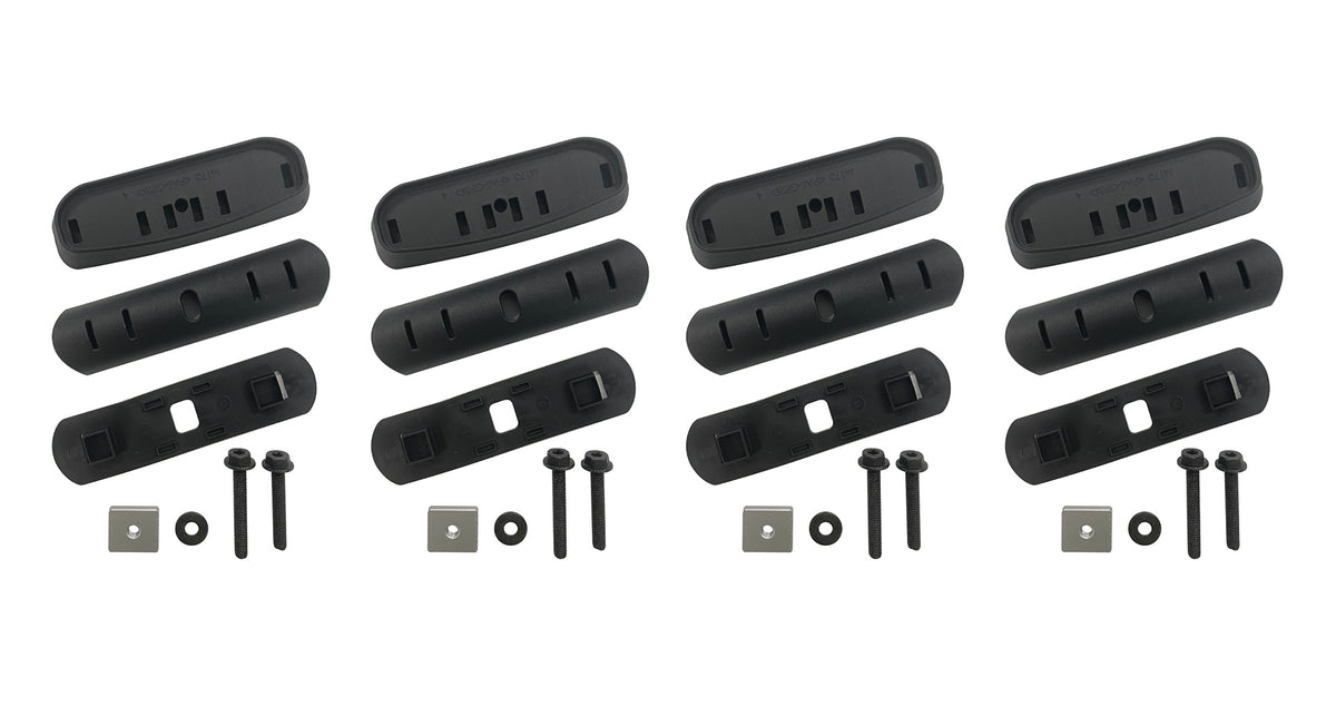 The RCP base kits are compatible with Rhino Rack's range of RX300 and RCH/RCL leg systems. This kit enables crossbars (Vortex, Sportz & Reconn Deck bars) or Pioneer systems to be fitted onto a variety of branded tonneau covers' roller shutter channels or any track system on canopy roof mounts. It provides a lightweight, low-profile installation to maximise the vehicle's cargo-carrying capabilities"