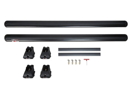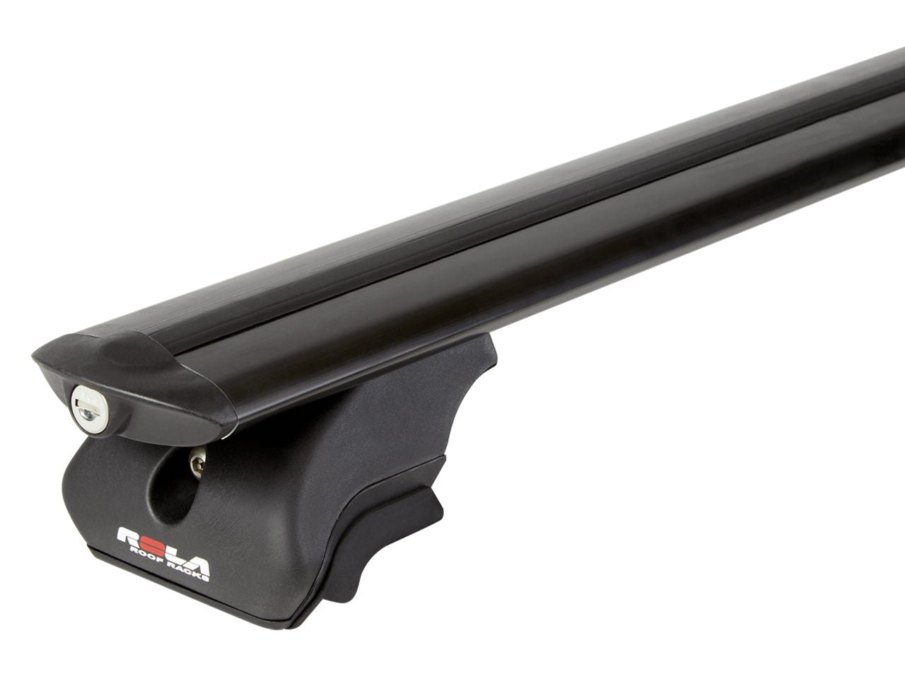 Fully detachable, extended roof racks for vehicles with factory fitted roof rails are perfect for the family who want to carry a number of accessories including a luggage pod, roof rack or kayak. The global REX fitment is key lockable for added security. The racks offer an overhang past the rails. The quick fit End Supports and Stainless-Steel straps are model specific.. Available in black anodised finish only.