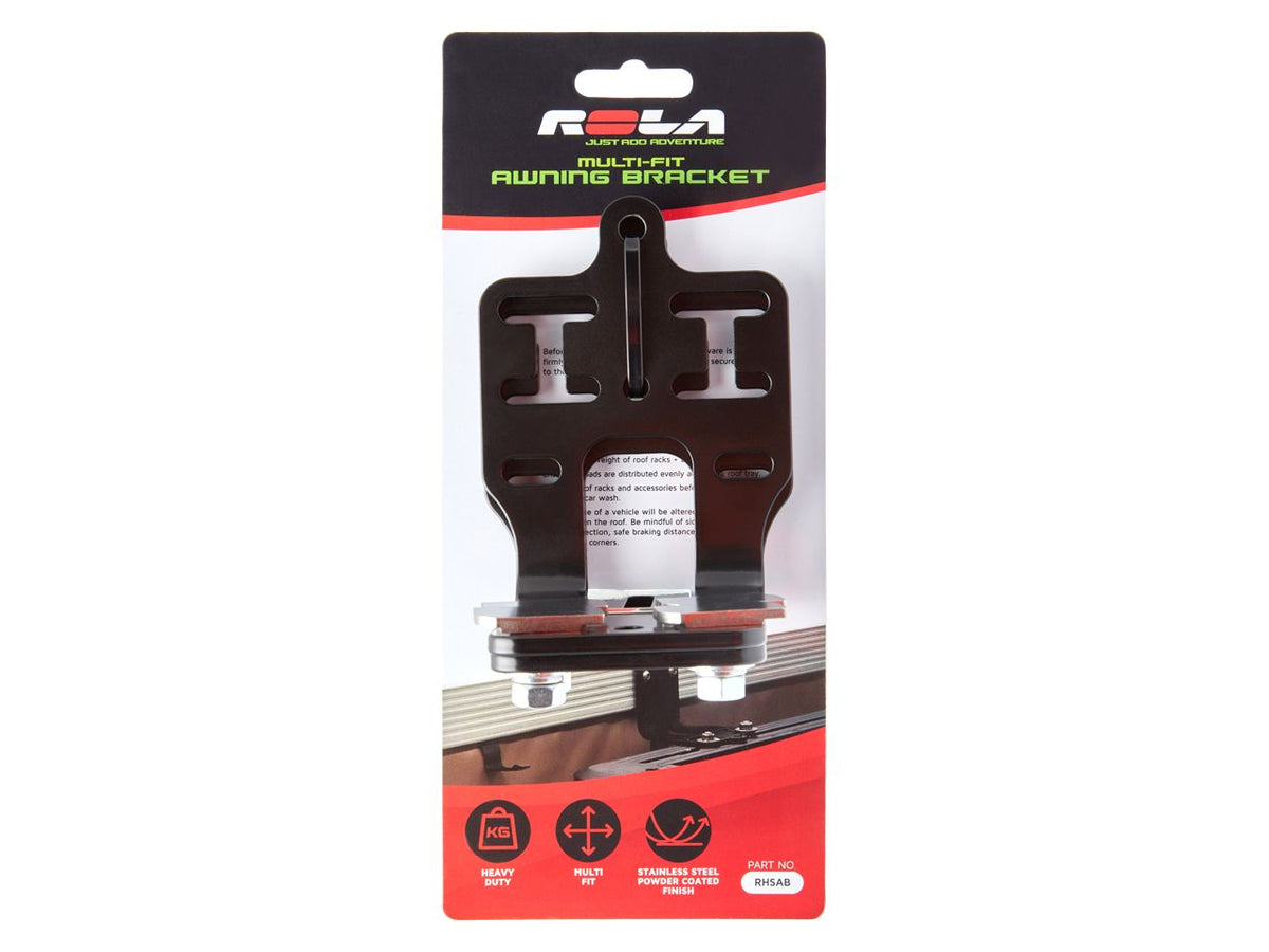 The Rola Awning Bracket provides a strong and secure way to mount your awning to your flat tray or roof rack. Suiting most popular brands of awnings, the slotted design provides adjustability and the reversible design allows for maximum height adjustment.